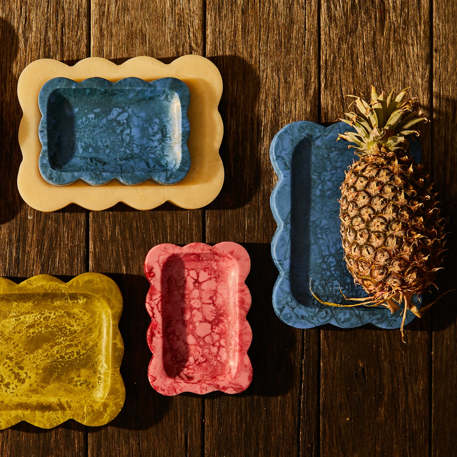 - Poured and swirled by hand, every piece is entirely unique